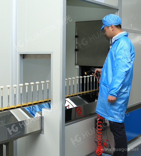 1.上料-手動靜電除塵-素材預熱-自動靜電除塵-自動噴涂-烘烤-冷卻-下料(拆分成三條一涂一烤線) 2.上料-手動除塵-素材預熱-自動除塵-自動噴底-烘烤-自動噴普通面-冷卻-下料(合并成兩涂兩烤) 3.上料-手動除塵-素材預熱-自動除塵-自動噴底-烘烤-自動噴中漆-烘烤-自動噴面-冷卻-下料(合并成三涂三烤) 4.上料-手動靜電除塵-素材預熱-自動靜電除塵-自動噴-IR-UV光固化-冷卻-下料(單獨面漆)
